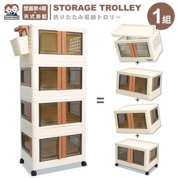 ANDYMAY2 伊勢川三開門兩扇折疊推車-塑蓋款4層+夾式掛籃 (1組) OH-Q243