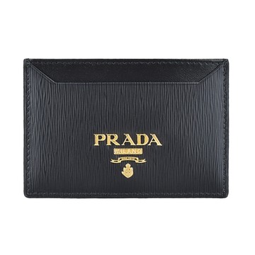 PRADA 1MC208 浮雕LOGO水波紋扁式名片卡夾.黑