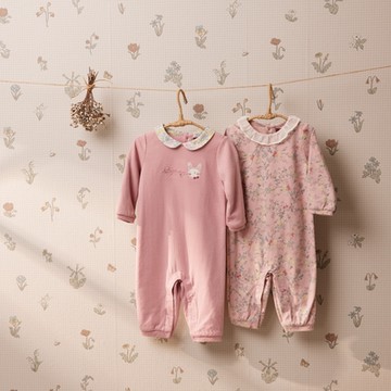 【日本OP mini】嬰兒兩用連身衣 四季款粉紅