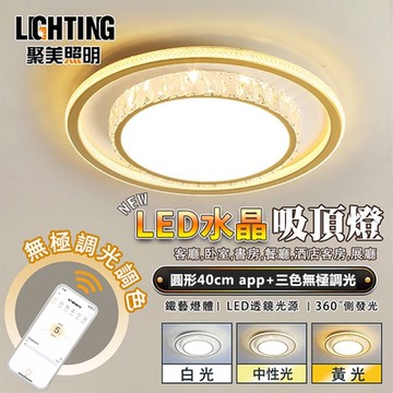【聚美照明】吸頂燈 led水晶吸頂燈 輕奢LED客廳燈 手機APP+無線遙控 無極三色調光 現代時尚簡約水晶燈