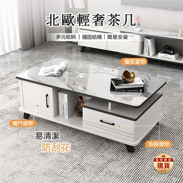 hoi!林氏木業北歐簡約二抽儲物伸縮岩板茶几組合 UM4L