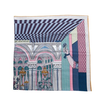 HERMES愛馬仕 Grand Theatre Nouveau 140大劇院混羊絨披肩/方巾(灰/藍/玫瑰)