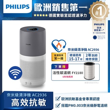 【Philips 飛利浦】奈米級抗敏空氣清淨機 (AC1711/80) 送濾網一組