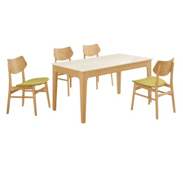 Homelike 喜家居130cm實木餐桌椅組(一桌四椅)-四綠椅(2312-22)