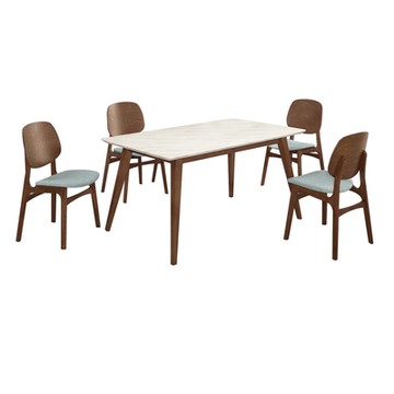 文創集 馬修實木4.7尺雲紋石面餐桌布餐椅組合(一桌四椅組合)-140x80x74cm免組