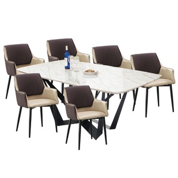 Homelike 喜家居岩板餐桌椅組(一桌六椅)-胡桃色(2420-33)