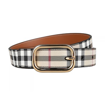 BURBERRY 巴寶莉 經典格紋塗層帆布拼接皮革女士腰帶30mm(經典米x金)