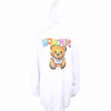 MOSCHINO 七彩氣球泰迪熊白色長版運動衫 洋裝