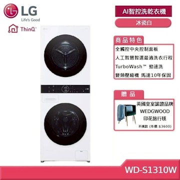 LG WashTower™ AI智控洗乾衣機WD-S1310W(洗衣13公斤+乾衣10公斤)