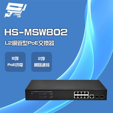 昌運監視器 昇銳 HS-MSW802 8埠+2 PoE L2網管型供電交換器 交換機