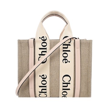 CHLOE WOODY 字母帆布兩用托特包(米x粉邊)小款