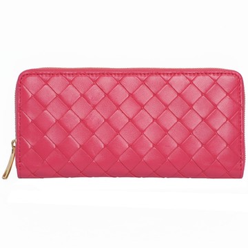 BOTTEGA VENETA 608051 經典編織小羊皮ㄇ字拉鍊長夾.紅