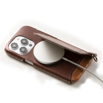 【n max n 台灣設計品牌】iPhone15 Pro 經典系列 - 磁吸站立卡袋手機皮革套 - 巧克力