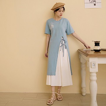 Hana Mokuba 後鬆緊腰前開岔長裙