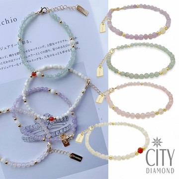 | MC | 兩顆水晶原石幸運手鏈 海藍寶橄欖石紫水晶黃水晶