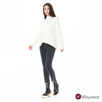 KeyWear奇威名品 開衩切割不須邊牛仔褲-黑色