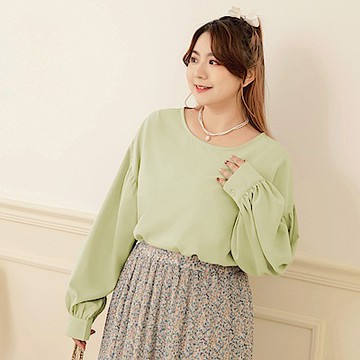 雲朵自訂款-純色柔滑雪紡拼接拋袖圓領上衣