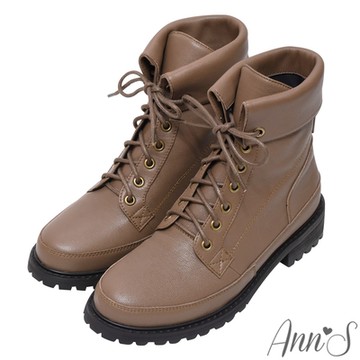 🔥網路限定長短靴788UP🔥Ann’S波妮小羊皮真皮7孔綁帶反折平底短靴3.5cm-咖啡