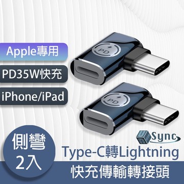 UniSync Apple專用 Type-C轉 Lightning PD35W快充傳輸轉接頭 直頭 黑色 2個 30.5mm