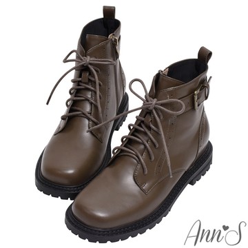 Ann’S防潑水材質-顯瘦100分綁帶厚底短靴5cm-咖(版型偏小)