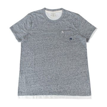 A&F Abercrombie & Fitch 刺繡麋鹿LOGO胸前口袋設計棉質混紡短袖T恤(男款/灰x白)