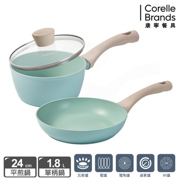 Corelle Brands 康寧餐具 藍寶石鑄造不沾鍋單柄鍋18cm(含蓋)+平煎鍋28cm