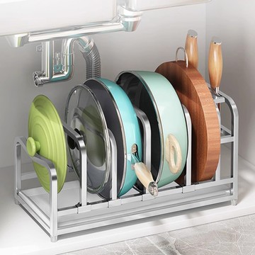 櫥柜內伸縮鍋具收納架平底鍋砧板多功能收納架201不銹鋼鍋蓋架