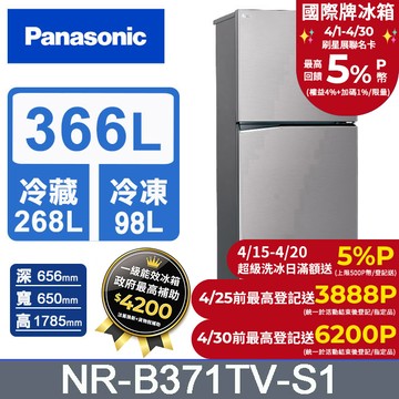 Panasonic國際牌422公升雙門變頻晶漾銀冰箱NR-B421TV-S