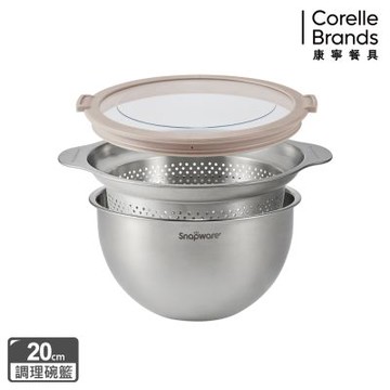 (六件組)【康寧 Snapware】不鏽鋼調理鍋(含蓋)+瀝水籃24cm+20cm