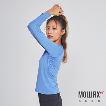Mollifix 瑪莉菲絲 A++無縫針織長袖訓練上衣 (活力藍)、瑜珈服、瑜珈上衣、長T恤、運動服