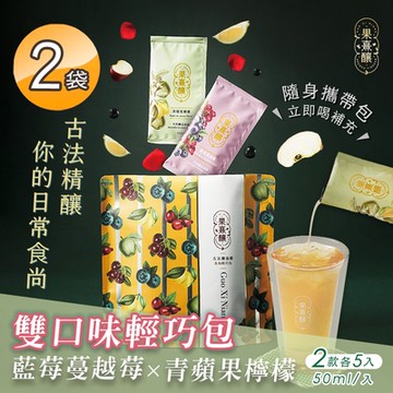 【果熹釀】純古法天然果醋 雙口味輕巧包 藍莓蔓越莓x青蘋果檸檬兩款各五包x2袋(每袋10包/獨立包裝/隨身包)