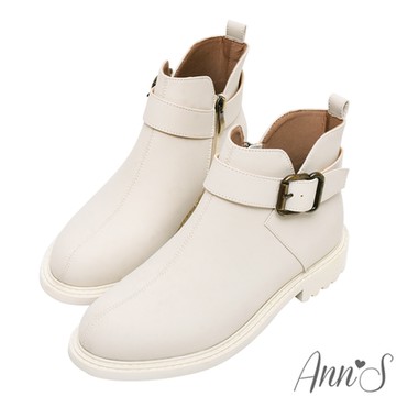 ⭐APP結帳任一雙66折⭐Ann’S防潑水材質-洛雷塔側V顯瘦古銅釦帶平底短靴3cm-米白