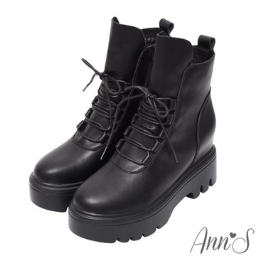 【Grace Gift】短靴 綁帶靴 靴子【韓團必備圓頭輕量厚底綁帶短靴】1色 35-41號 厚底靴