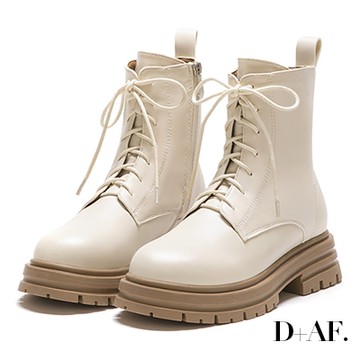 D+AF 偶像學園輕量厚底綁帶短靴 米