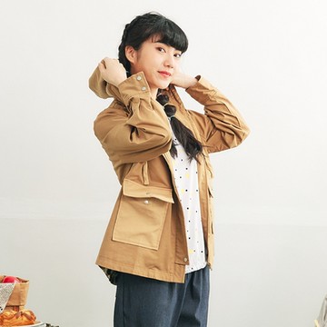 【Dailo】率性配色口袋連帽長袖外套 綠 駝