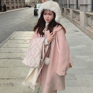時尚朗姿2025秋冬新款駝色雙面羊絨女大衣繭型寬松顯瘦毛呢外套
