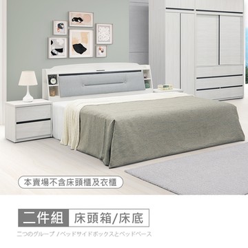 【傢俱工場】韓式奶油風 雙人5尺 (貓抓皮床頭片+燈帶懸浮床) 床底/床座/床台-房間2件組