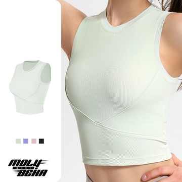 【Molybeka 魔力貝卡】現+預 螺紋無袖瑜珈服上衣/Bra Top/運動背心/健身內衣/運動內衣/瑜珈內衣/無鋼圈內衣