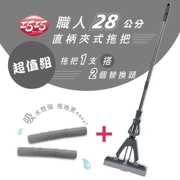 【巧巧】職人33cm伸縮夾拖超值組(1拖+2頭)