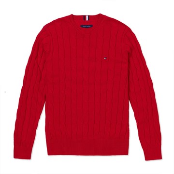 TOMMY 熱銷圓領Logo麻花針織毛衣-紅色
