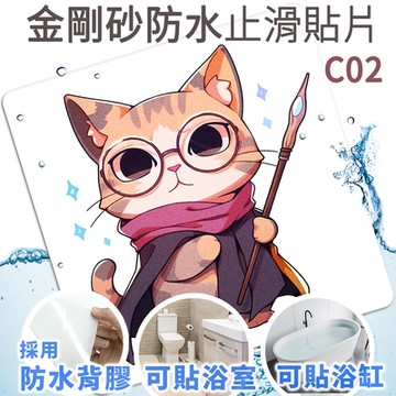 Echain Tech 金鋼砂止滑貼片 魔法貓 C01 加大款 (18x18公分) 防滑貼片/浴室止滑貼/地板貼/防水止滑貼