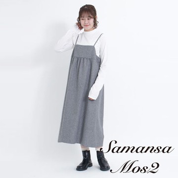 抓褶感後鬆緊設計平口吊帶洋裝(0F001305310) - Samansa Mos2