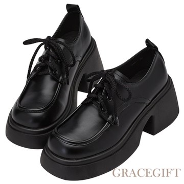 2026春季款小眾學院風龍齒小皮鞋女松糕厚底鞋方頭大頭粗跟樂福鞋