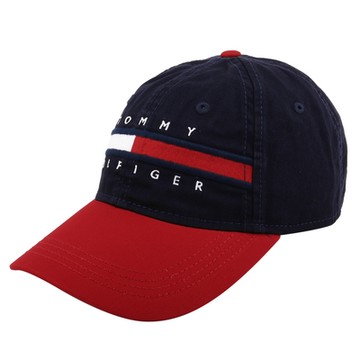 TOMMY HILFIGER- 經典紅白槓字母繡線LOGO 棒球帽(紅x藍)