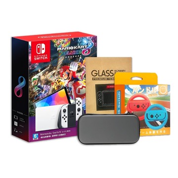 Switch OLED 款式主機(白色) +CYBER三合一主機包+8入卡夾收納盒+保護貼+手把充電座+ 送手把矽膠套