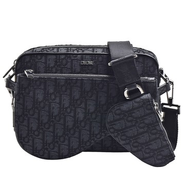 Dior SADDLE經典Oblique緹花帆布組合斜背包(黑色)