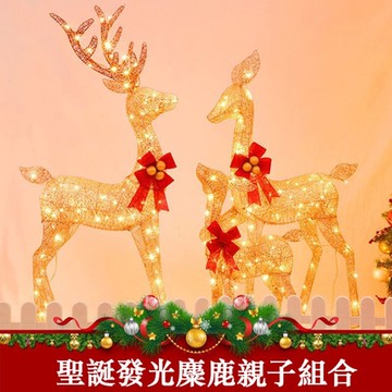 【三口之家】聖誕鐵藝發光鹿組合 聖誕節裝飾品 聖誕樹裝飾鹿 櫥窗發光麋鹿 聖誕鹿擺件