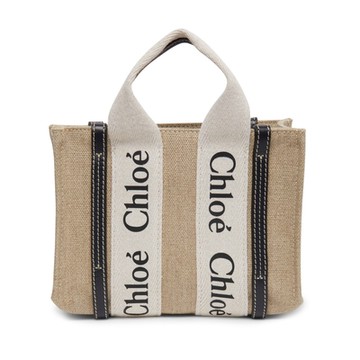 CHLOE-WOODY條槓字母LOGO帆布托特包(米x淺棕)min 款