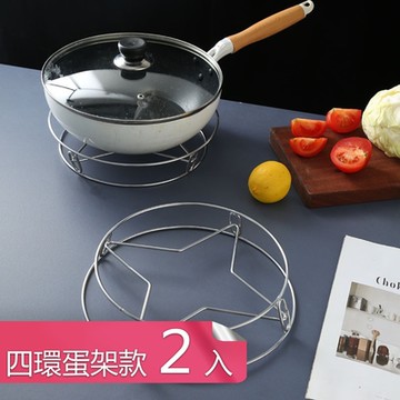 荷生活 加粗型不鏽鋼鍋架隔熱墊多功能蒸架水煮蛋蒸蛋架-四環蛋架款2入