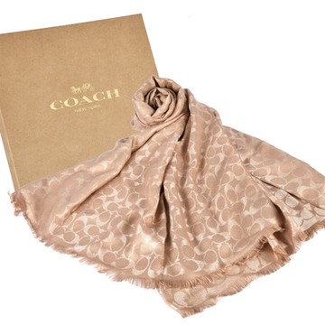 COACH 經典滿版金屬質感C LOGO莫代爾混織羊毛圍巾禮盒-淺駝金色